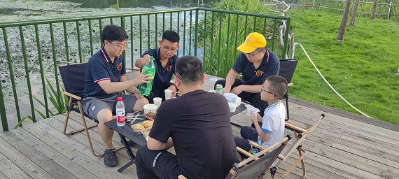 晚上公司预备了丰盛的宴席,伙伴们纷纷大快朵颐!吃饱喝足后,伙伴们坐在湖边纳凉,都难掩满脸的开心,互相分享着今日的趣事,感慨公司对员工的关心与照顾。